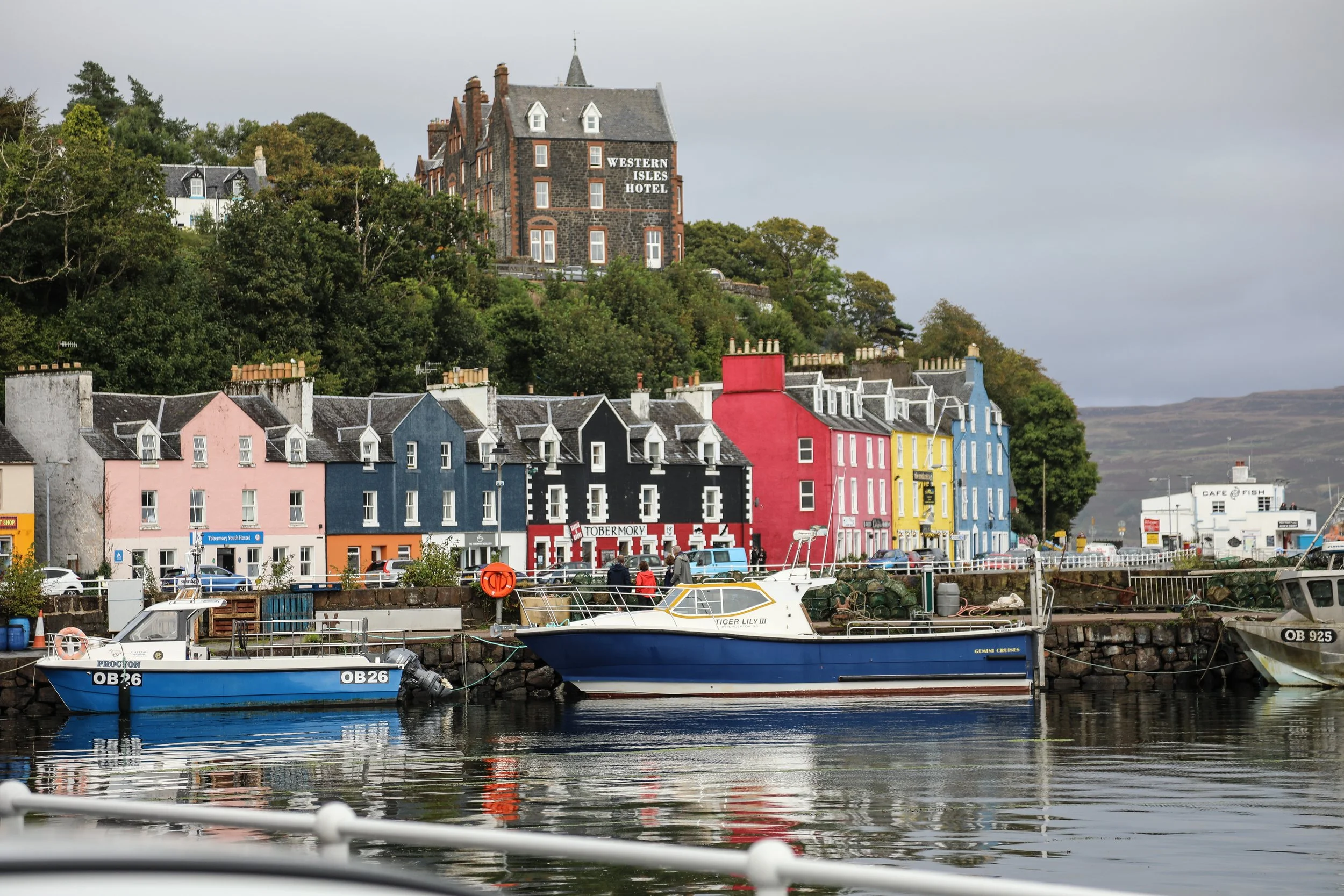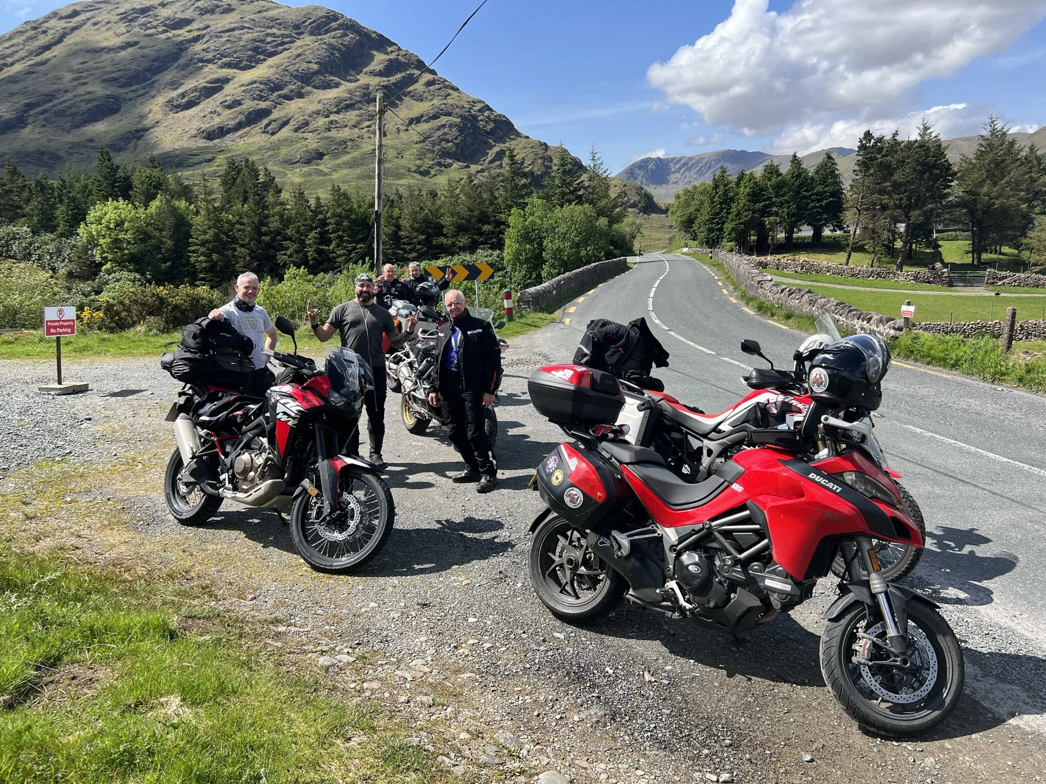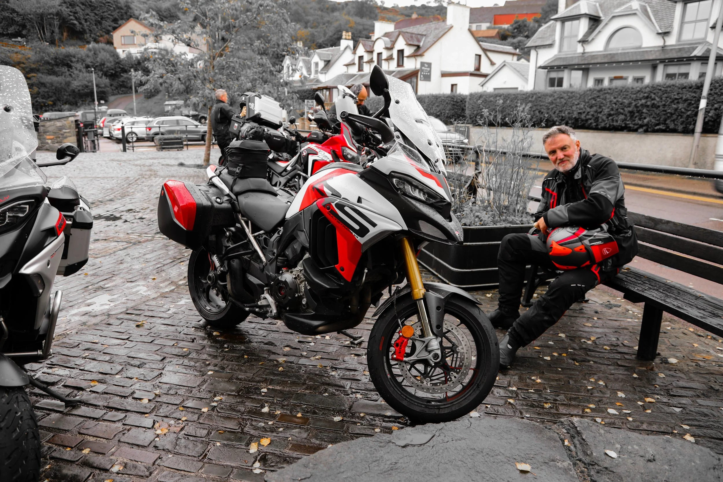 We roll out of Moffat and immediately find rhythm in the flowing curves of the Southern Uplands. It’s the perfect opener — open sight lines, smooth tarmac, and the kind of roads that let everyone settle into tour mode. As we push North, Scotland begins to stretch its legs. Valleys widen. Mountains sharpen. The Highlands rise. We carve through vast glens and dramatic ridgelines before reaching the west coast and boarding our first ferry — engines off, sea air on, anticipation building. Landing on the Isle of Mull shifts the tone instantly. Narrower roads, coastal bends, wild scenery and that unmistakable island calm. We finish in Tobermory, its colourful harbour providing a picture-perfect end to day one.