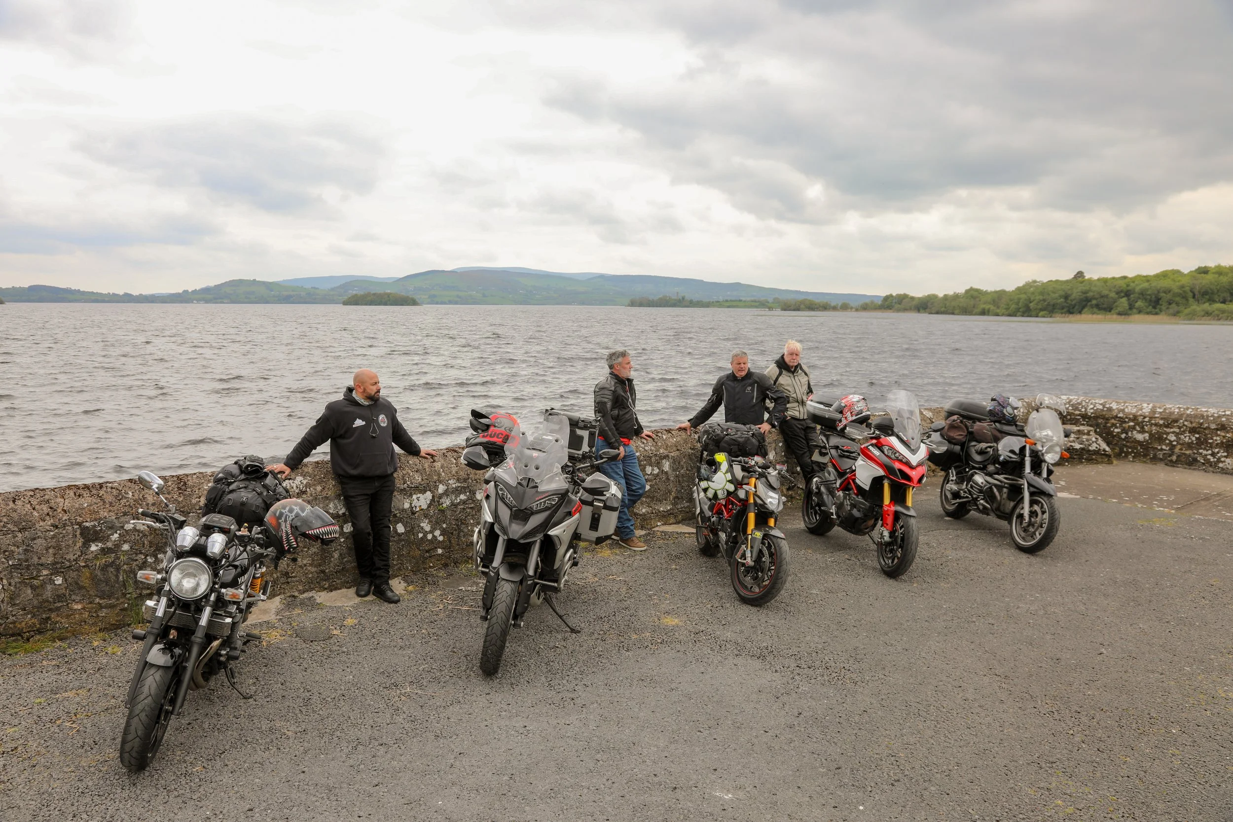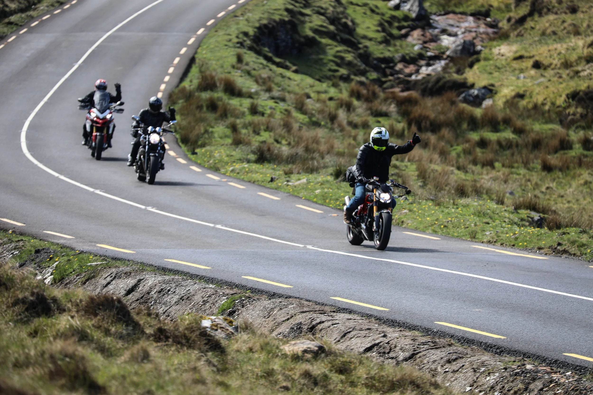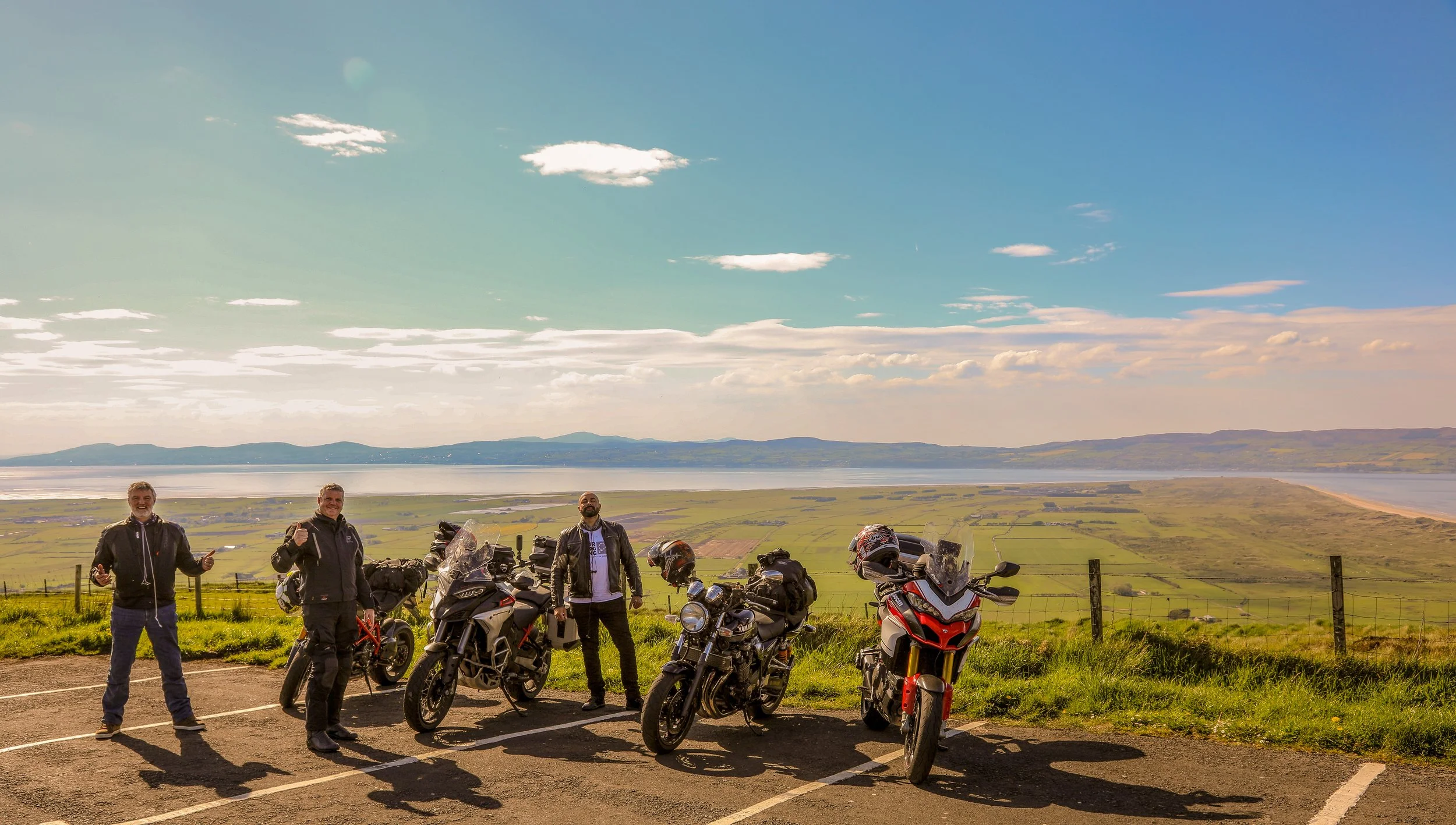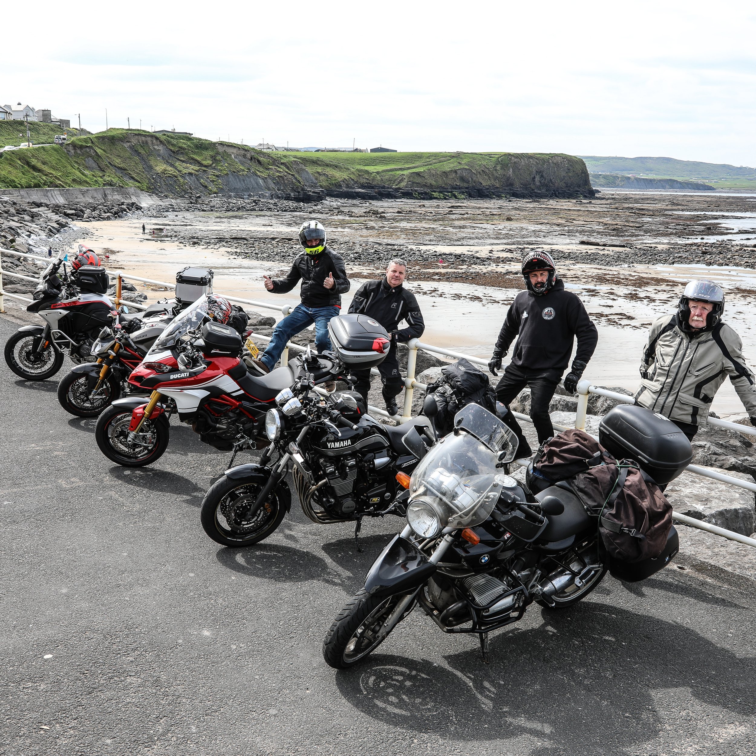 We begin the day with a fast ferry ride from Cairnryan to Belfast which gives the group plenty of time to relax into some early friendships before our adventure begins. Once on land, we roll out of Belfast and quickly leave the city behind, heading south around Northern Ireland’s beautiful North East coastline. We jump on and off another couple of scenic ferry routes on our journey South towards the border after Warren Point. The scenery changes as we swap the rugged coastline, for Ireland’s rolling countryside, and the long sweeping bends and fast, open sections that allow the group to find it’s rhythm! As we push into the Midlands, traffic thins and the roads become more rural and relaxed. This is enjoyable, progressive riding — smooth lines, good visibility and confidence-building curves. The opening day is all about settling into Irish tarmac — rugged coastline, flowing A-roads and the charm of the towns and villages we ride through on our journey. Expect green fields stretching to the horizon, stone walls lining the roads and that unmistakable Irish light that makes everything feel cinematic. We finish at the Tullamore Court Hotel, perfectly placed after a strong opening leg and ready for the Atlantic run west.