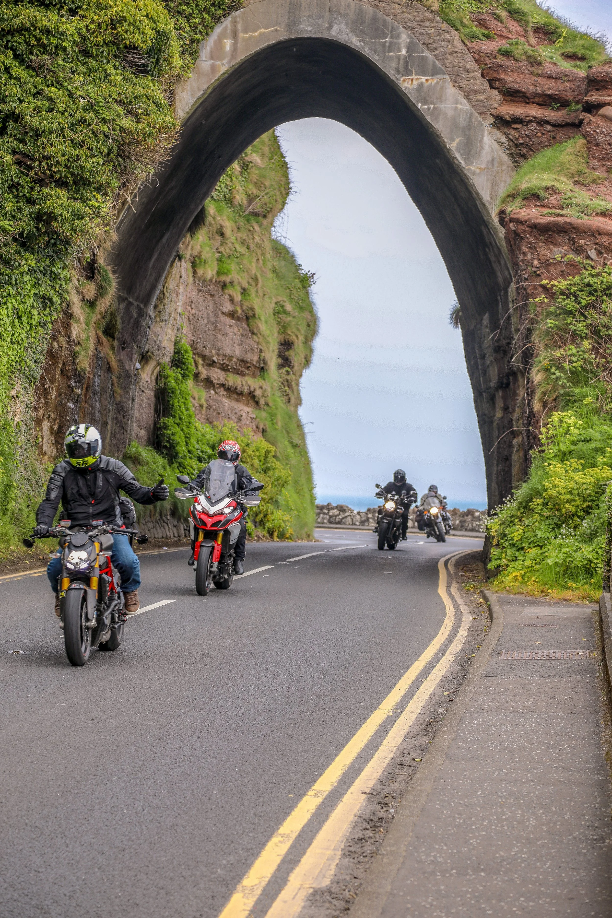 Today we transition from wild Ireland into road racing territory and once again, we head off North West, hugging the stunning coastline for a big day of riding. We will cover around 200 miles of beautiful roads but we need the weather Gods to be on our side. This coastline is breath-taking, it really is. We’ll pass through Mountcharles, Ardara, Dungloe, then up and around Glenveagh National Park via Dunfanaghy. We then head South towards Letterkenny and up through Bridgend over the border into Northern Ireland. Once again, we pick up the coastal road towards the pictureque town of Royal Portrush where we have our last stop. The coastline delivers dramatic Atlantic views, fast open sections and beautifully flowing roads that rise and fall with the contours of the land. As we track toward Portrush, the atmosphere begins to build. More bikes on the road. More race support vans. More buzz at every fuel stop. By the time we roll into Portrush and check into the Adelphi Hotel, we are firmly in North West 200 country.
