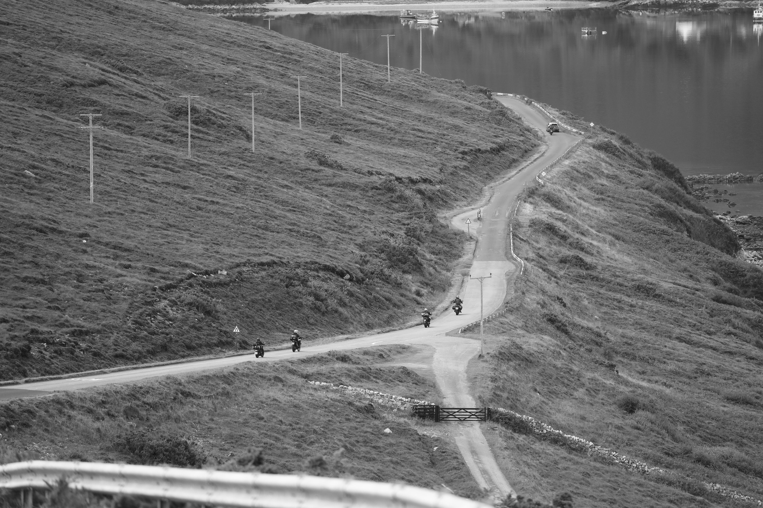 The roads across Lewis are beautifully open and flowing, cutting through peat moorland and hugging rugged coastline. It’s meditative, powerful riding. Another epic ferry ride sees allows for some relaxation before hitting the jackpot….