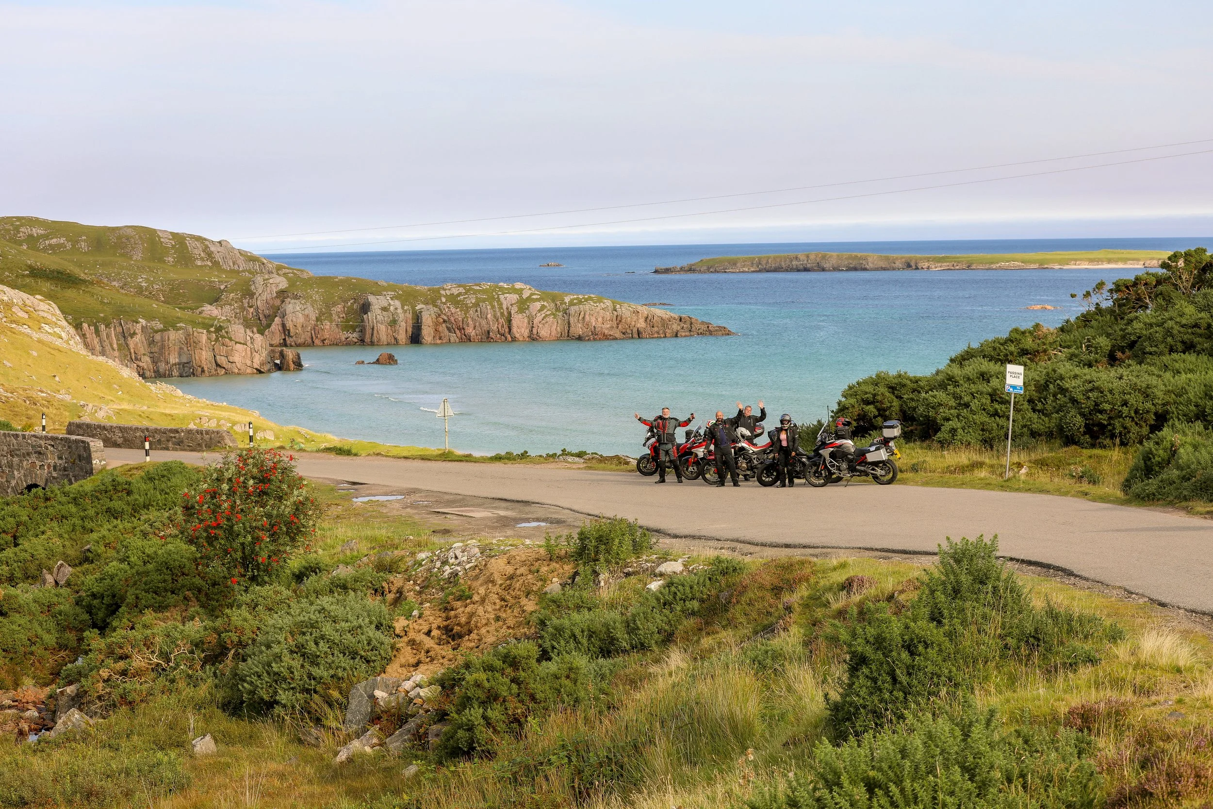 Now we join one of the most famous touring routes in the world — the North Coast 500. We ride a spectacular stretch of the North Coast 500 (NC500) along Scotland’s far north coast — remote, rugged, unforgettable. This is bucket-list tarmac. Big Atlantic views. Clifftop roads. Long, open sections where it’s just you, your bike, and the elements. Riding the NC500 isn’t just about ticking off a name — it’s about experiencing why it’s legendary. The scale. The exposure. The drama.